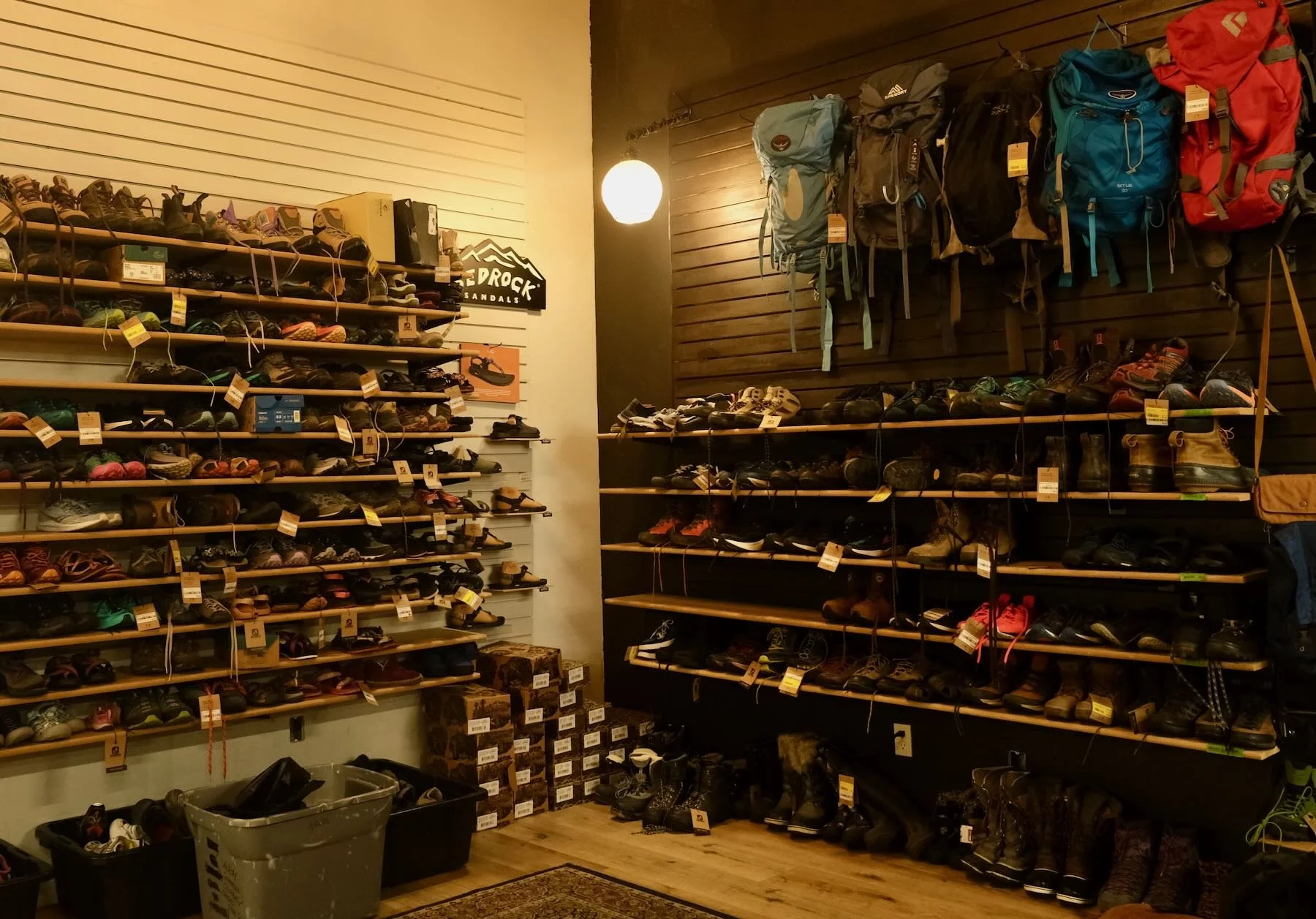 Our used footwear selection is one of the biggest in Utah, with over 100 pairs of gently used hiking boots, running shoes, and trail sandals, most with 50 or fewer miles on them, and all steeply discounted.